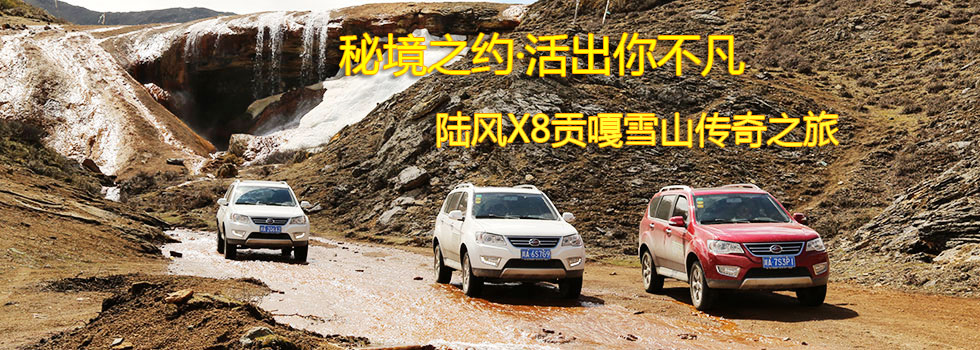 “秘境之约·活出你不凡—陆风X8贡嘎雪山传奇之旅” 试驾品鉴之旅,将在2015年5月20日-5月23日由知名专业媒体中国SUV网、 《中国SUV周刊》携手主流汽车媒体驾驶陆风X8共同走进川藏名山胜景,从天府之国之誉的成都出发,途经都江堰、小金川、丹巴、摄影天堂新都桥、蜀山之王贡……[进入详情]